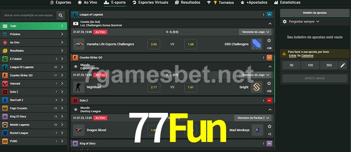 A aposta 77Fun oferece aos jogadores a experiência mais conveniente de apostas em eSports!
